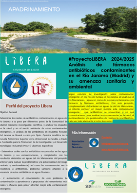 Este proyecto, complementario al anterior en la determinación de fármacos antibióticos en el río Manzanares, intenta obtener más conocimiento sobre los contaminantes emergentes fármacos antibióticos en diferentes puntos del recorrido del río Jarama por la Comunidad de Madrid, en qué niveles y concentraciones se encuentran y cuáles pueden ser sus efectos, tanto en el medio ambiente como en la salud humana.